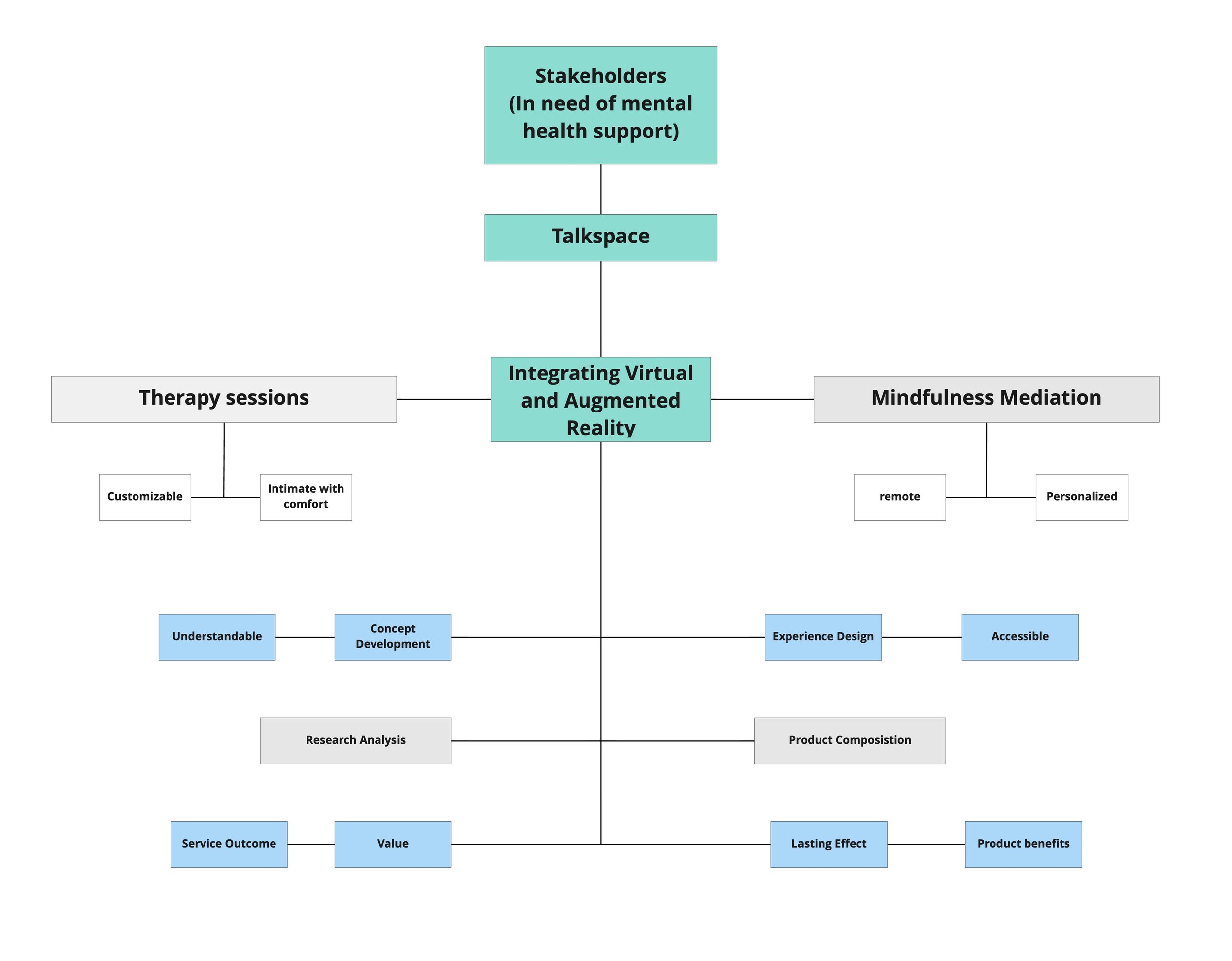 With generative questions, our team explored new possibilities of enhancing the Mental Health aid experience. We have presented 4 different personas, how they interact and their journey to healing with our integration of virtual and augmented reality through Healing Rooms, Augmented Decompression, Holographic Therapists and Virtual Characters. With these implications, we will provide the company TalkSpace with the opportunity to expand their reach by introducing new dimensions to their services.