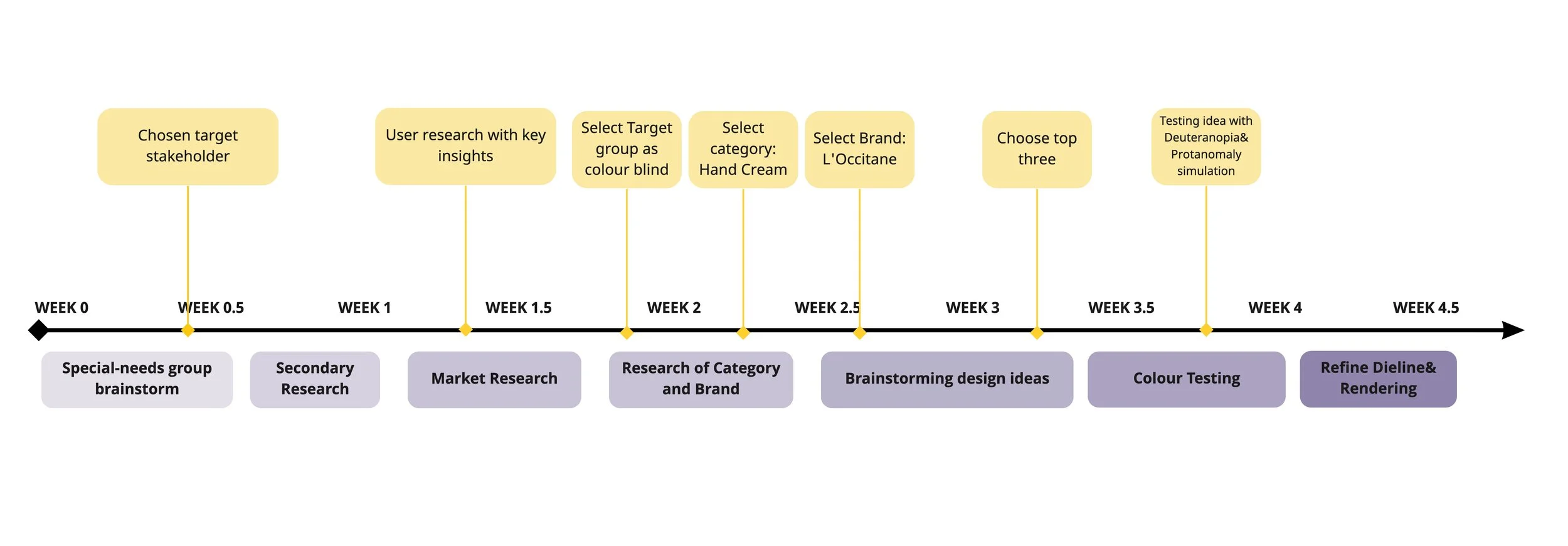 We finally chose hand cream among our per- sonal care products, which is a category for all age and gender groups. Hand creams bring nourishment and care to our skin by being in touch with our body. We believe it is sensual to convey a tactile and physical experience through visual design. Besides, hand cream comes with a selection of scents which rely on visual information to differentiate while main- taining the consistency of brand identity. So we decide to redesign the hand cream packaging for color blind community for the purpose of more efficient and clear visual design.