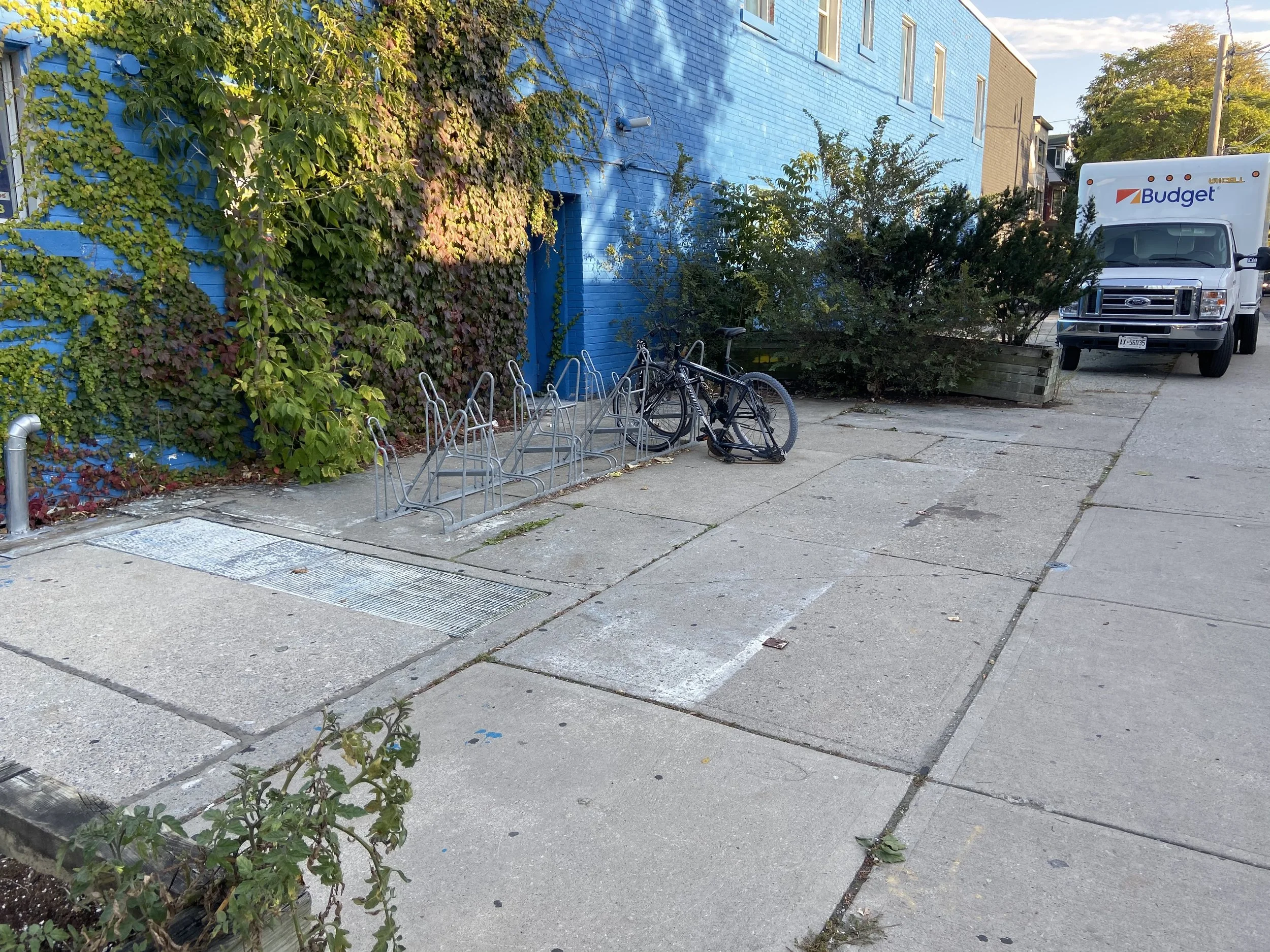 Most of the bicycle racks on the sidewalk are small to avoid blocking pedestrians.